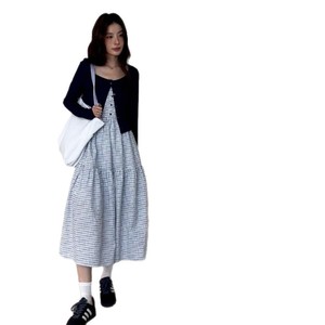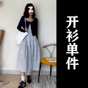藏蓝色开衫+蓝色吊带裙【套装】【气质流行单品/漂亮绝美/韩系巨好看/海边度假/小香风今年流行/冷淡系