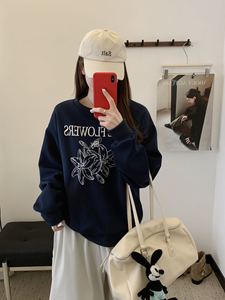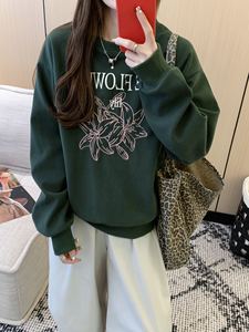 2025秋季新慵懒风东大门韩系刺绣花朵女秋冬季宽松休闲显瘦卫衣