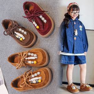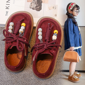 儿童鞋子2025秋季新款真皮女童串串挂饰勃肯鞋韩版洋气男童袋鼠鞋