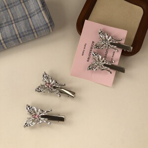 设计感立体蝴蝶水钻鸭嘴夹气质百搭发夹碎发卡前额侧边夹子发饰品