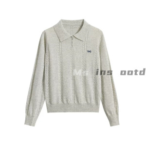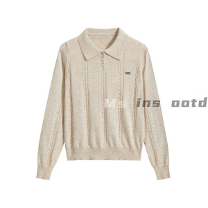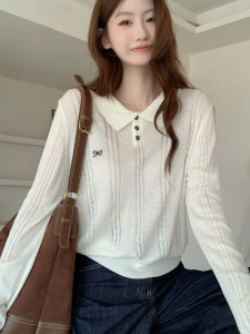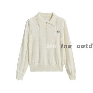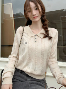 韩系麻花针织长袖polo领毛衣早秋冬季新款百搭松弛感打底内搭上衣