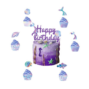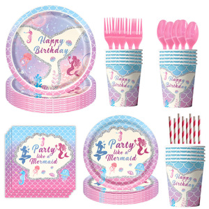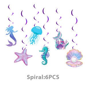 新美人鱼主题派对用品生日装饰聚会场地布置道具生日拉旗螺旋桌布