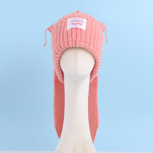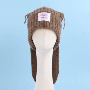 跨境韩版甜美可爱长兔耳朵毛线帽子女秋冬保暖护耳字母贴布针织帽