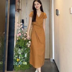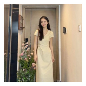 韩系简约设计感交叉绑带连衣裙女夏季新款收腰显长款茶歇裙子