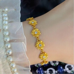 沙金饰品花丝镶钻杏花手链女仿真黄金小众复古高级感结婚三金首饰