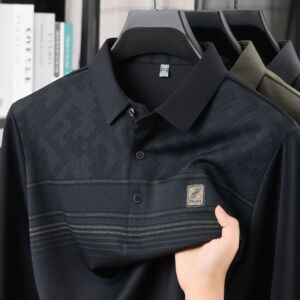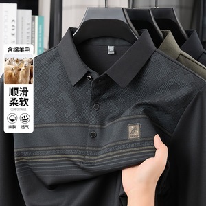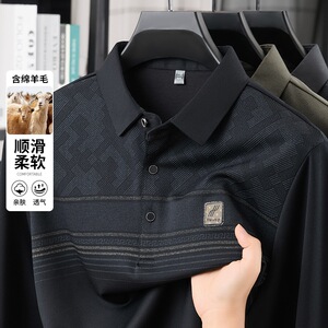 一件代发 t恤男士长袖春秋季中老年休闲翻领男体恤时尚打底衫男装