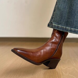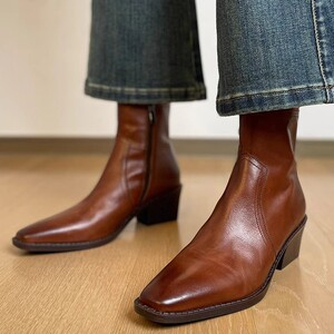 【现货】短靴女2025秋冬中跟百搭切尔西靴粗跟靴子潮尖头马丁靴