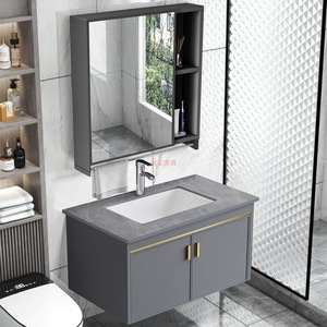 80*47岩板盆柜-全套配件+储物镜柜-优质