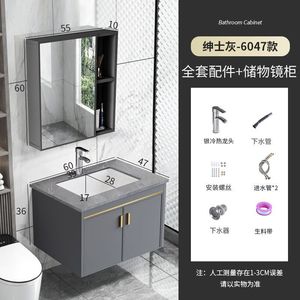 60*47岩板盆柜-全套配件+储物镜柜-优质