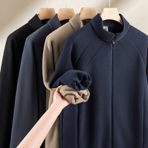 秋冬季新款中青年男士摇粒绒外套加绒加厚保暖抓绒立领卫衣夹克衫