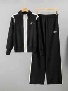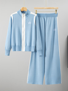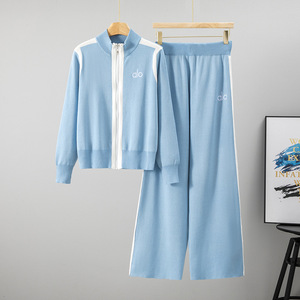 欧货跨境外贸休闲时尚套装女秋冬拉链针织休闲运动阔腿裤两件套潮