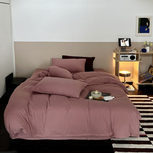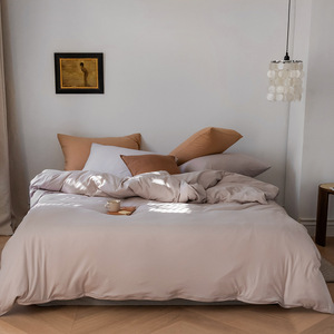 A类全棉针织棉素色简约大气床上用品四件套柔软亲肤裸睡被套床单