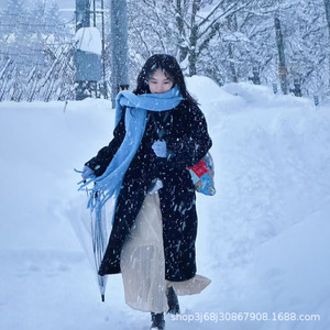 仿羊绒围巾蓝色加大加宽保暖围巾女冬季马海毛厚版围脖男氛围感