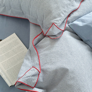 a类色织密拷边水洗棉细条纹四件套纯棉简约亲肤被套床单床品