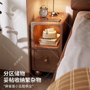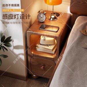 实木床头柜迷你小型极窄带灯床边超窄简约现代卧室夹缝窄边置物架