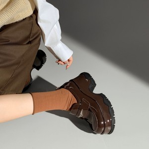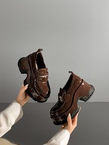 欧洲站女鞋25秋冬时尚一脚蹬软牛漆皮圆头增高轻厚平底乐福鞋单鞋