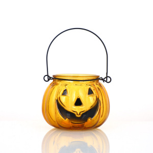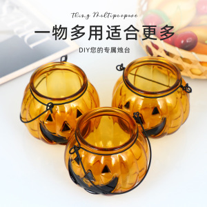 跨境批发万圣节鬼脸南瓜玻璃罐喷色储物瓶丰收节鬼节香薰蜡烛杯