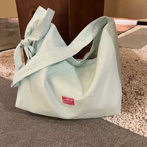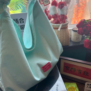 薄荷绿夏日简约条纹大学生购物袋大容量纯色单肩帆布包女韩版ins