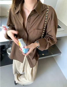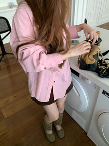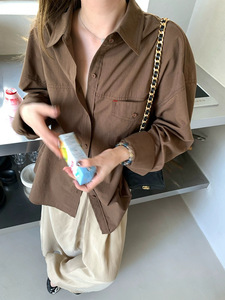 im向 细节满满 小廓形撞色上衣女设计打枣纽扣慵懒感长袖衬衫
