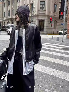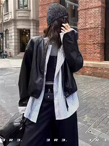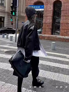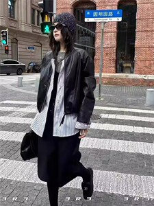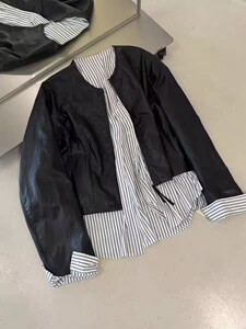 爆款皮衣外套2025秋季新款韩系显瘦假两件宽松休闲百搭夹克上衣