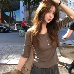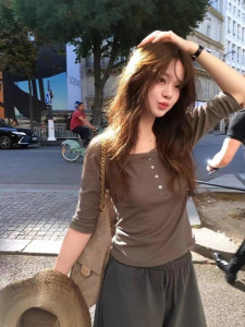 现H 韩国vegetable蔬菜家2025秋季新款简约修身显瘦T恤女打底衫