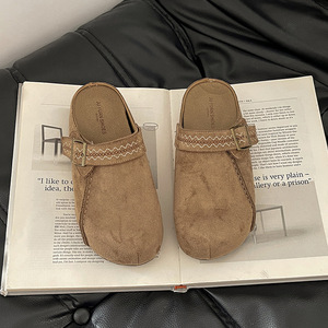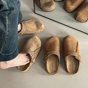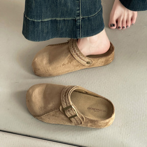 一脚蹬复古风勃肯拖鞋女2025夏季新款外穿一脚蹬懒人鞋平底半拖鞋