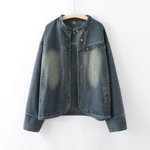 复古水洗牛仔外套女春秋季百搭洋气新款中式宽松秋季设计夹克上衣