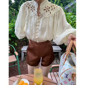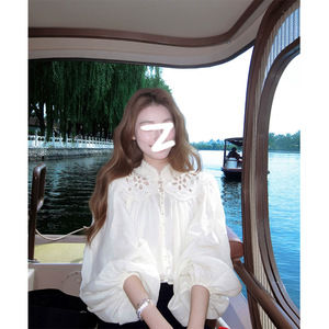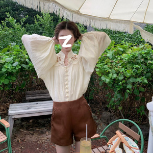SourceWithU 刘亦菲同款 100苎麻镂空刺绣高质感棉麻长袖衬衫上衣