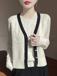 法式气质小香风V领开衫女2025秋冬新款时尚减龄设计感针织衫套装