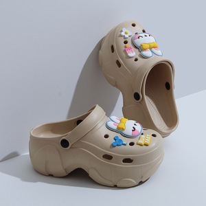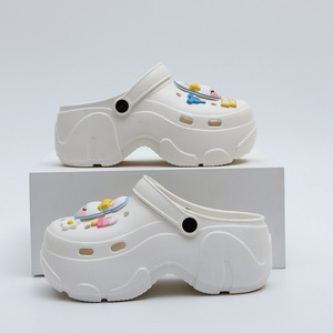 踩屎感洞洞鞋女夏季外穿防滑鞋花新款eva包头软厚底增高凉拖鞋子