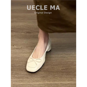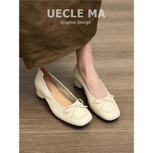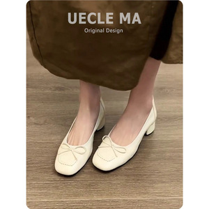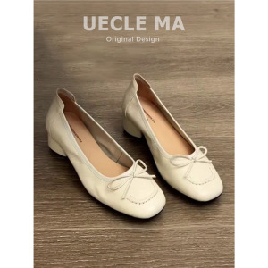 超软羊皮~法式单鞋女粗跟蝴蝶结芭蕾鞋子绝美软底玛丽珍蛋卷女鞋