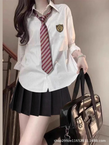 学院风jk制服套装条纹衬衫女春秋2025新款长袖衬衣设计感小众上衣