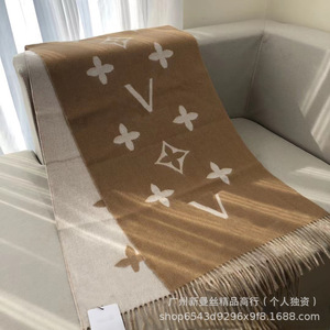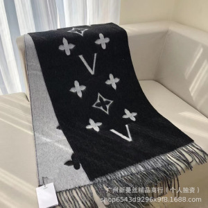 芯片版本双面黑灰羊毛羊绒围巾女高级感秋冬老花字母披肩加厚保暖