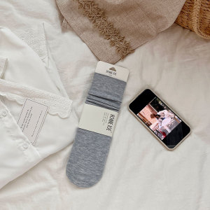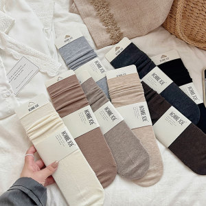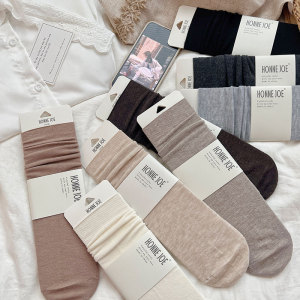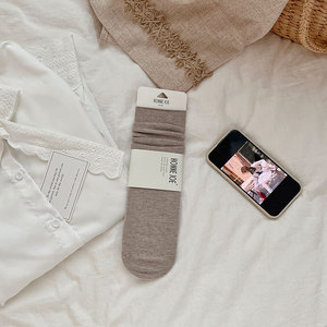 羊毛袜大地色系中筒袜子女堆堆袜百搭韩国东大门格雷灰色袜子批发