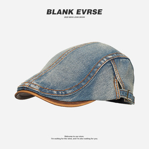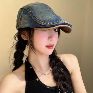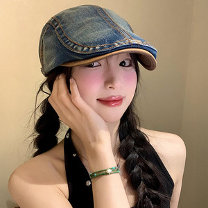 日系复古水洗牛仔前进帽女文艺百搭反戴报童帽休闲显脸小贝雷帽子