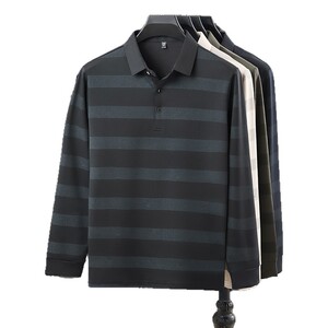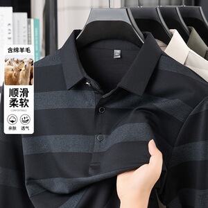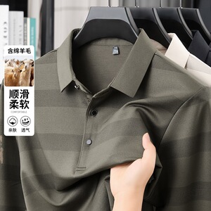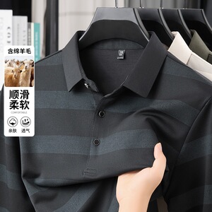 厂家直销 秋季男装长袖T恤衫男士休闲上衣翻领轻奢爸爸装含羊毛男