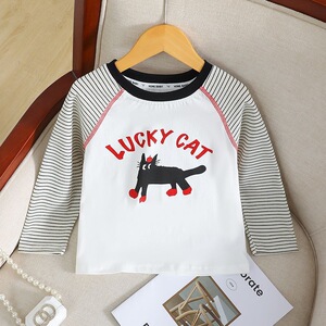 儿童t恤秋冬条纹打底衫男女儿童长袖韩版上衣2025秋童装新品批发