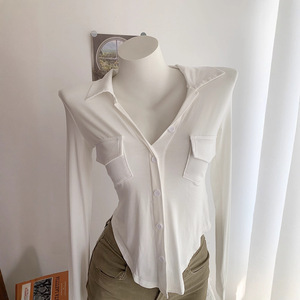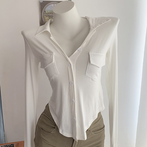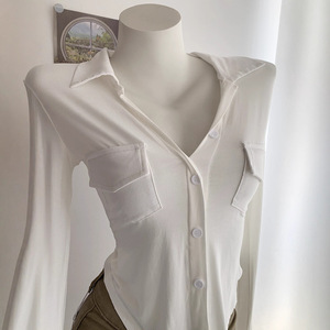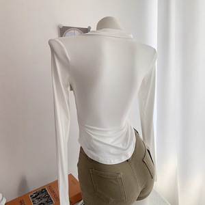 韩女气质修身显身材女人味翻领修身薄款上衣女