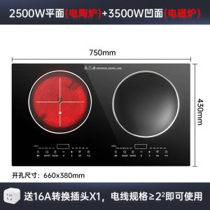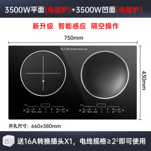 功率电磁炉双灶3500W嵌入式双凹面电陶炉双头镶入式灶家用