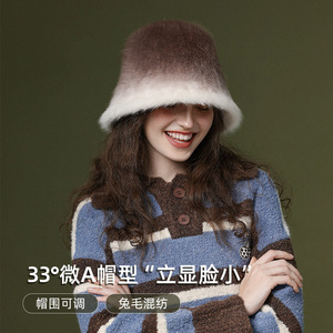 GOLOVEJOY高乐捷渔夫帽子秋冬女款显脸小兔毛保暖防风渐变大帽围