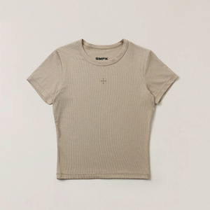 SMFK十字印章修身运动Tee高弹力醋酸亲肤微收腰T恤短袖