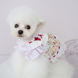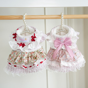 棒棒糖宠物狗猫咪碎花洛丽塔比熊中小型犬可爱两脚衣雪纳瑞裙子