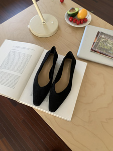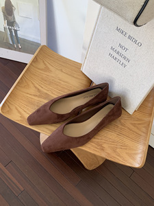 低跟绒面方头浅口单鞋女2025新款韩版百搭鞋一脚蹬通勤鞋四季女鞋