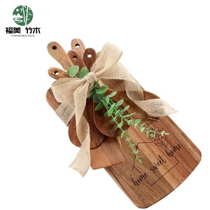 相思木熟食板实木水果面包托盘礼品定制奶酪盘砧板勺叉套装亚马逊