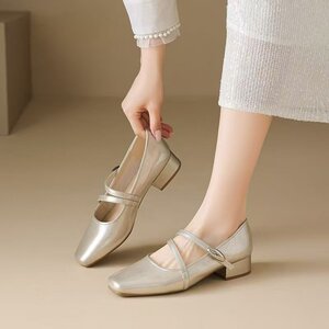 银色法式玛丽珍鞋女款2025秋季新款高跟单鞋绝美粗跟魔术贴小皮鞋