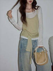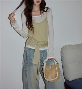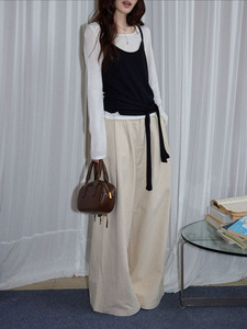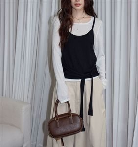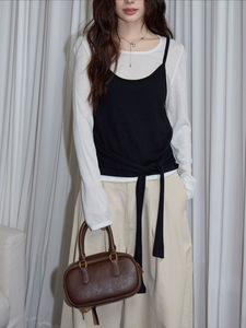 韩系设计感黑白针织衫女2025秋休闲气质修身长袖打底上衣