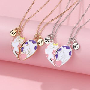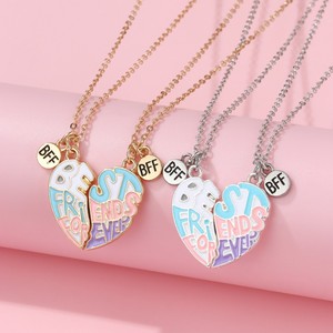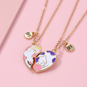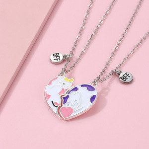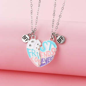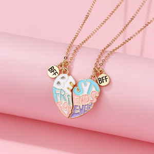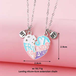 跨境热卖新款项链爱心拼接磁铁相吸磁铁相吸BFF好朋友闺蜜项链