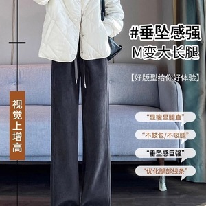 300斤秋冬新款高腰加绒阔腿裤女垂感休闲宽松裤子直筒香蕉雪尼尔