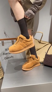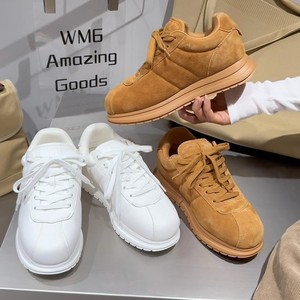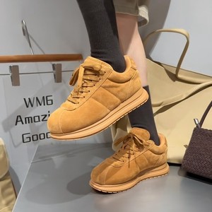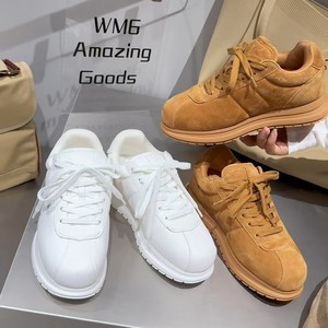 WM6欧洲站女鞋25秋时尚纯色软牛反绒皮圆头系带平底款德训鞋单鞋