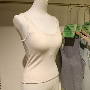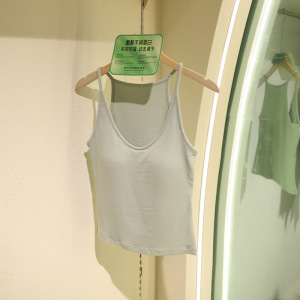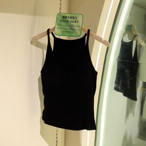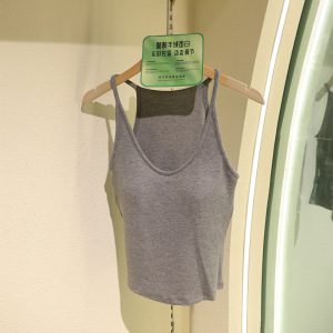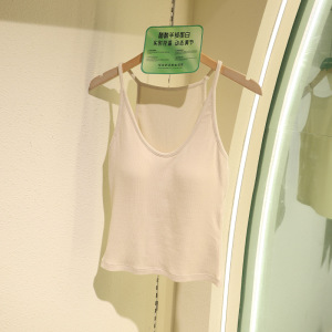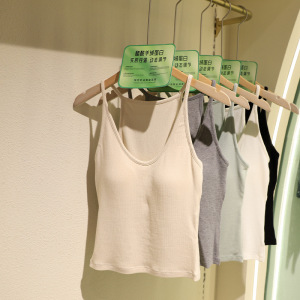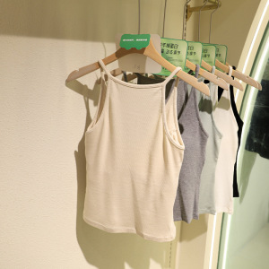 2025秋冬纯欲风极简螺纹吊带背心磨毛带胸垫女内搭可外穿打底